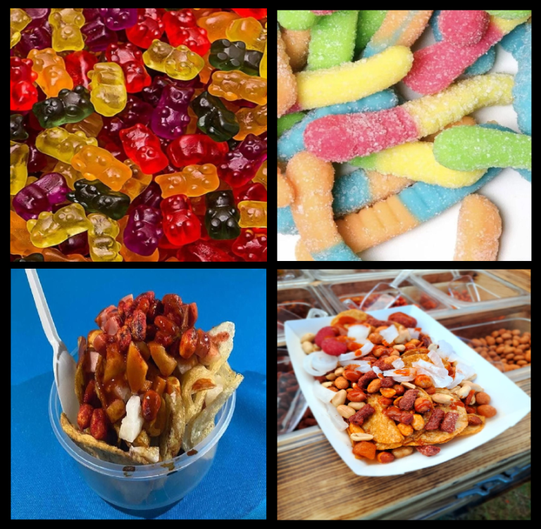 * Toppings: Gomitas enchiladas, variedad de cacahuates, maicitos, cueritos, salchicha, jicama, chileritos y otras golosinas como: Panditas, gomitas dulces, chocomentas, etc.